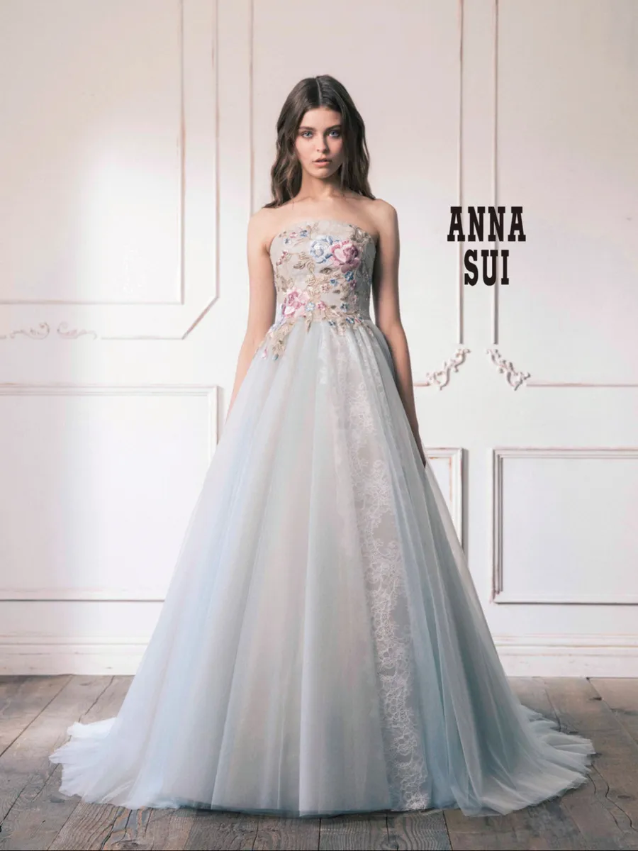 思いがけないほどに精巧なビジューの装飾や、デコルテを彩る様々なテクニックが、モダンな感性を強みに、現代の女性の心を掴む